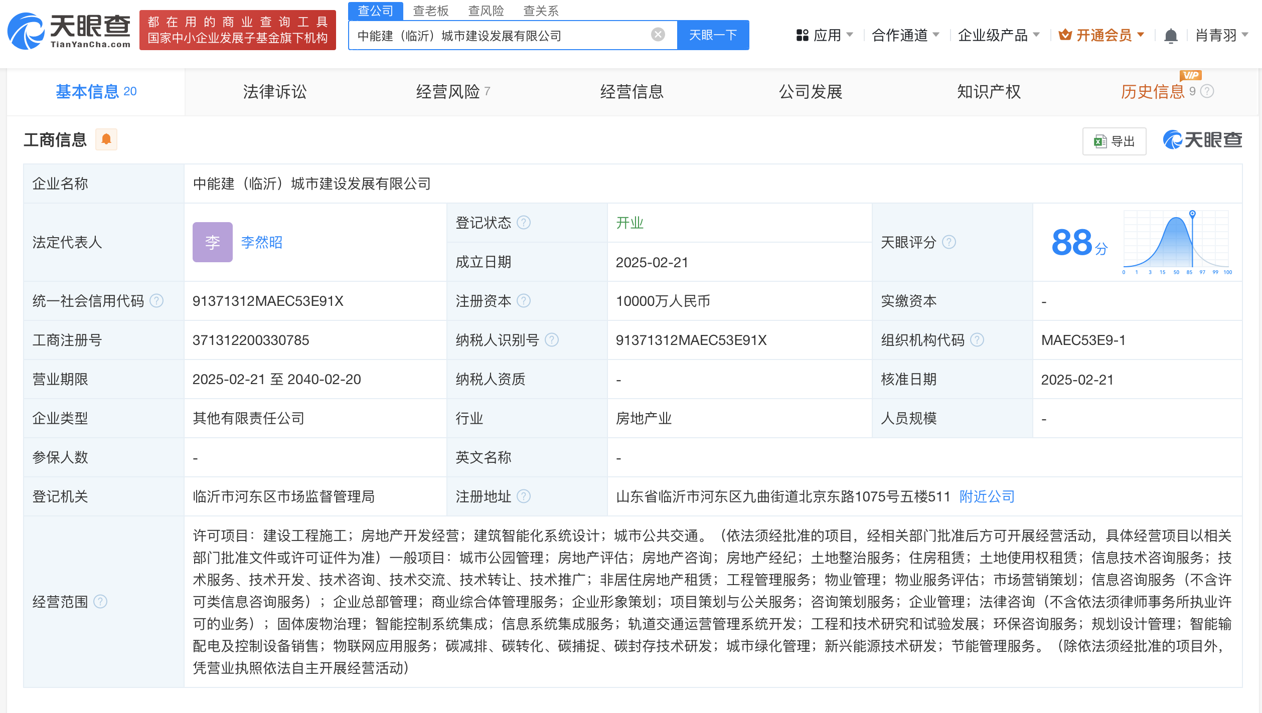 天眼查App显示,近日,中能建(临沂)城市建设发展有限公司成立,法定代表人为李然昭,注册资本1亿人民币,经营范围包括建设工程施工、房地产开发经营、建筑智能化系统设计、城市公共交通等。股东信息显示,该公司由中国能建(601868)旗下中国能源建设集团华东建设投资有限公司、中国能源建设集团江苏省电力建设第一工程有限公司、中国能源建设集团安徽电力建设第二工程有限公司等共同持股。