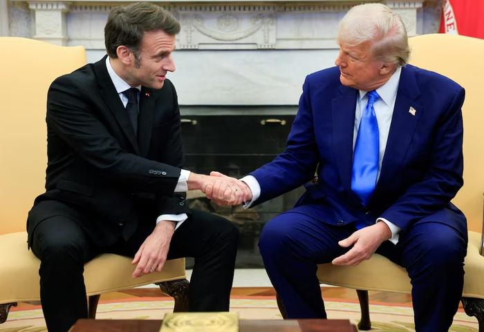 当地时间24日,赴美访问的法国总统马克龙与美国总统特朗普举行会晤。会晤后,马克龙与特朗普对媒体就俄乌冲突相关情况进行情况说明。