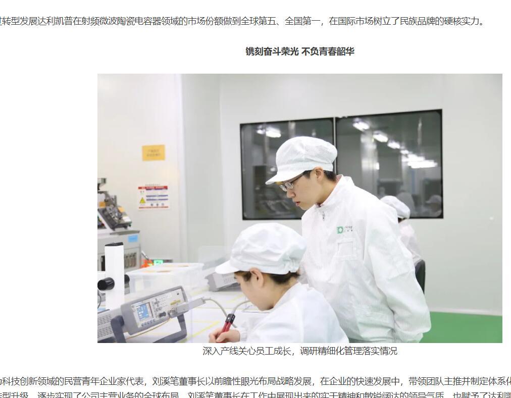 据刘溪笔自述,她从2018年10月开始担任达利凯普总经理,带领公司研发团队,深耕射频微波MLCC(MLCC指多层瓷介电容器)行业多年,累计主导、参与并推进13项国家级、50余项省市级重大科技课题任务,2017年—2023年累计到账资金1.38亿元。