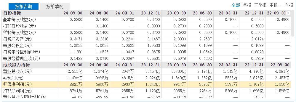 达利凯普自2022年登上近年营收与净利润的高峰后,其业绩出现下滑。2023年,达利凯普营收与归母净利润分别同比下滑27.52%和29.37%。2024年前三季度,公司营收及归母净利润同比下降8.02%和11.05%。