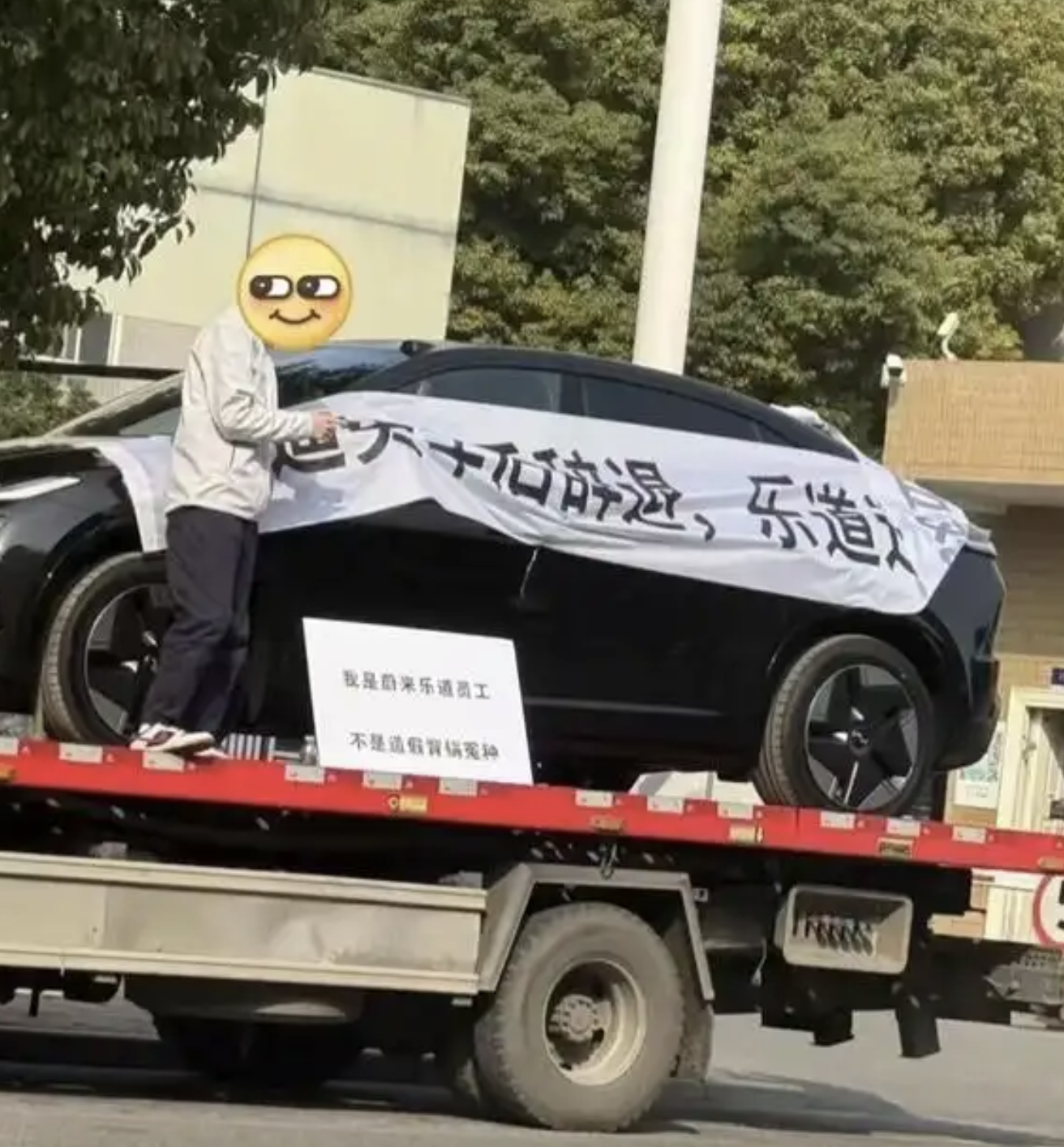 帖子中,有一位自称是乐道员工的车主,将车辆披挂维权横幅,拖车到蔚来售后维权。