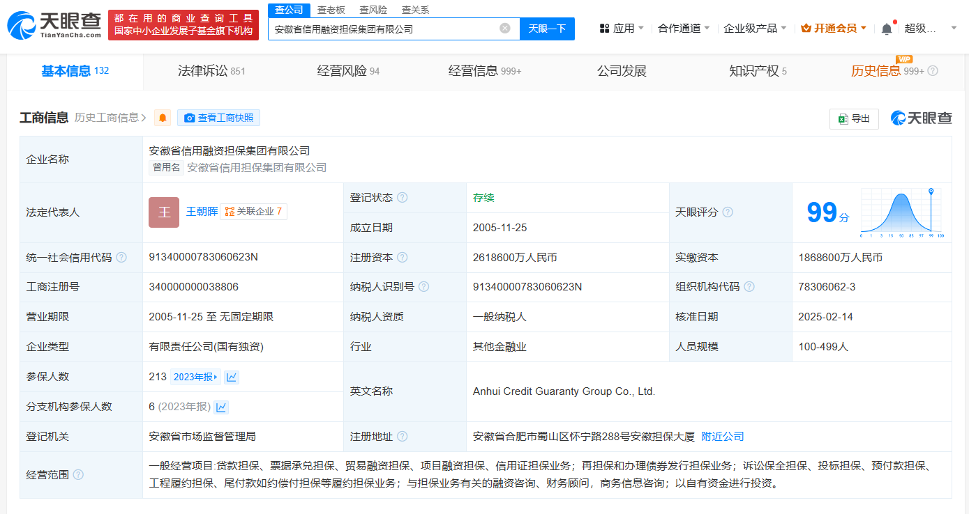 天眼查App显示,近日,安徽省信用融资担保集团有限公司发生工商变更,注册资本由186.86亿人民币增至261.86亿人民币。