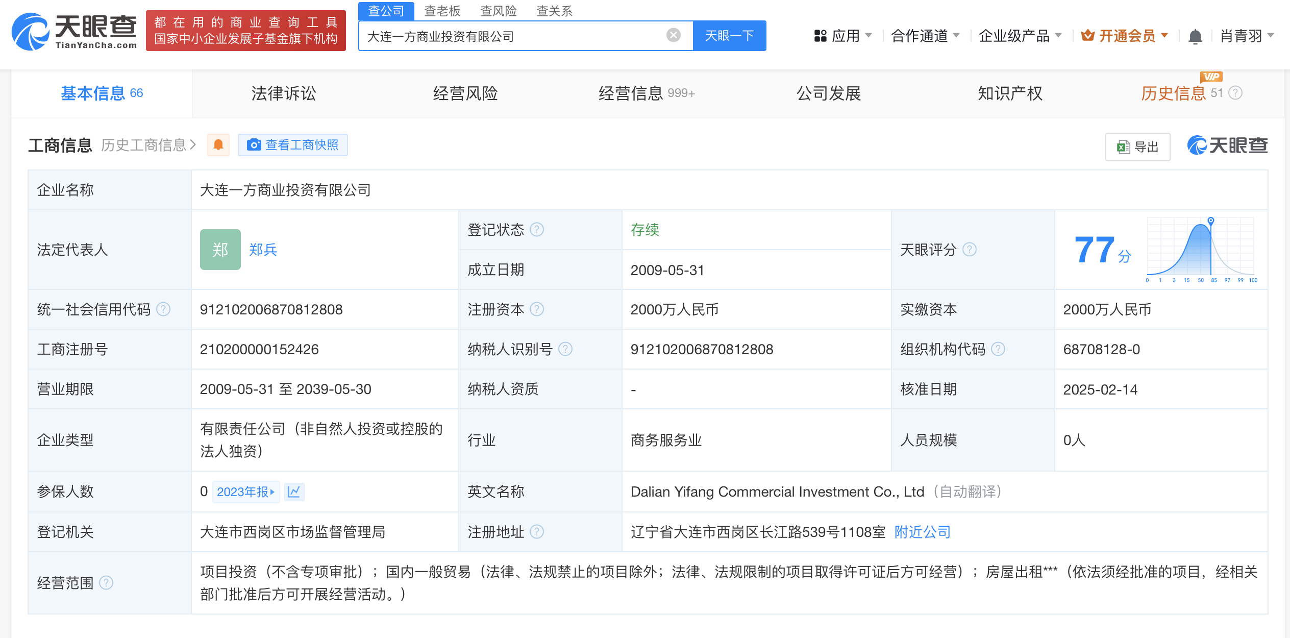 大连一方商业投资有限公司成立于2009年5月,注册资本2000万人民币,经营范围包括项目投资、国内一般贸易、房屋出租。