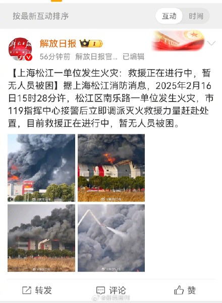 据上海松江消防消息,2025年2月16日15时28分许,松江区南乐路一单位发生火灾,市119指挥中心接警后立即调派灭火救援力量赶赴处置,目前救援正在进行中,暂无人员被困。