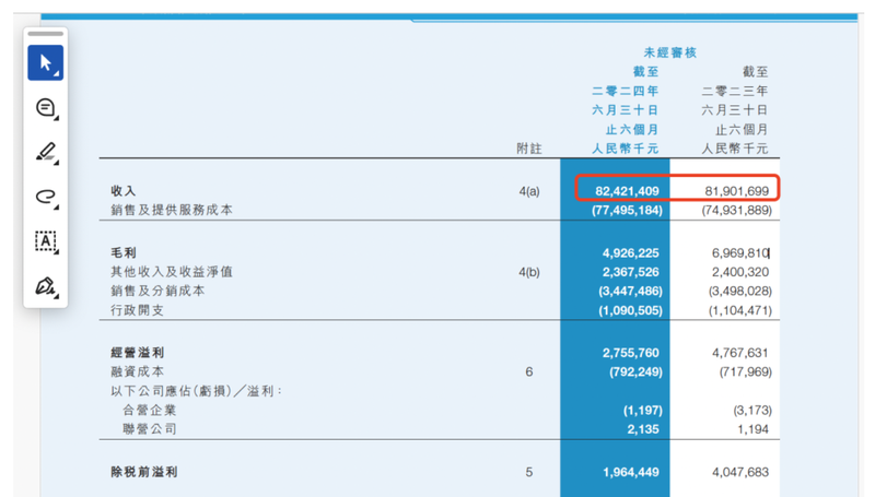 2024上半年,中升营业额824.21亿元,同比增长0.63%;归母净利润为15.80亿元,同比减少47.50%。