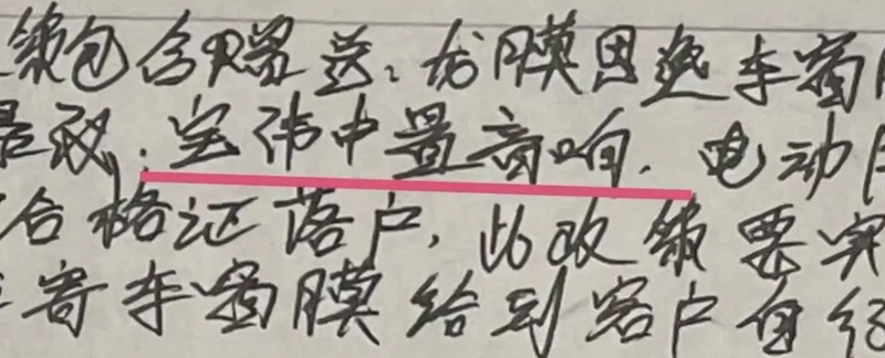 从李先生提供的合同来看,无论是手写版还是打印版,都未直接注明“宝华韦健”,而是以“宝伟中置”“中置音箱”等擦边的字眼替代,值得注意的是,手写版合同中,“宝伟”的“伟”还并非“宝华韦健”的“韦”。