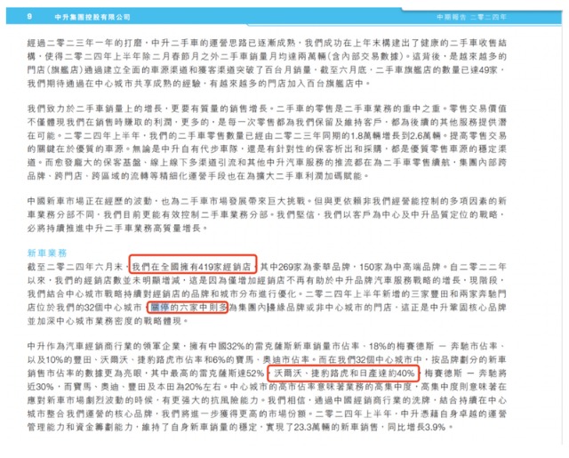 最新财报显示,至今年6月中升集团在全国拥有419家经销店,其中269家为豪华品牌,占比超60%,主打豪车市场。