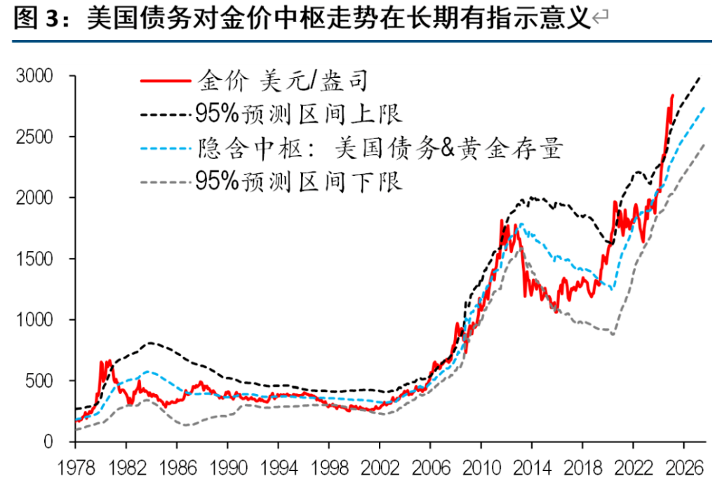 中信建投证券还提到,相关测算结果显示,目前按照美国财政部预计的未来两年赤字规模,对总体债务规模进行预测, 2026年债务隐含的金价中枢95%区间上沿将升至3060美元/盎司 。