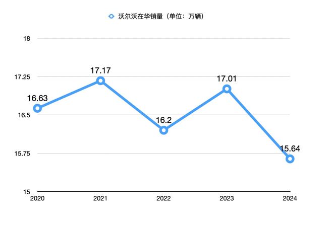 至于沃尔沃在其全球最大的单一市场中国的颓势更为明显。2024年,沃尔沃中国地区销量由上年同期的17.01万辆降至15.64万辆,减少8%。