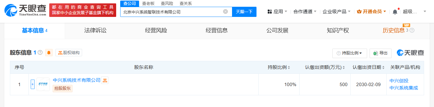 天眼查App显示,近日,北京中兴系统智联技术有限公司成立,法定代表人为朱仕龙,注册资本500万人民币,经营范围包括智能控制系统集成、信息系统集成服务、人工智能应用软件开发、人工智能行业应用系统集成服务、人工智能基础软件开发、人工智能理论与算法软件开发等。股东信息显示,该公司由中兴系统技术有限公司全资持股。