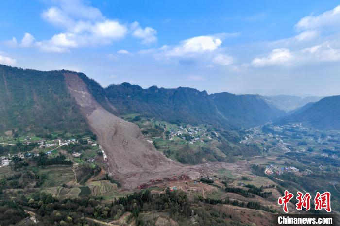 2月11日,航拍四川筠连县山体滑坡灾害全景。 (无人机照片)中新社记者 刘忠俊 摄