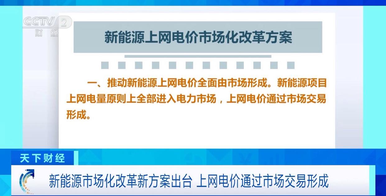 一是推动新能源上网电价全面由市场形成。