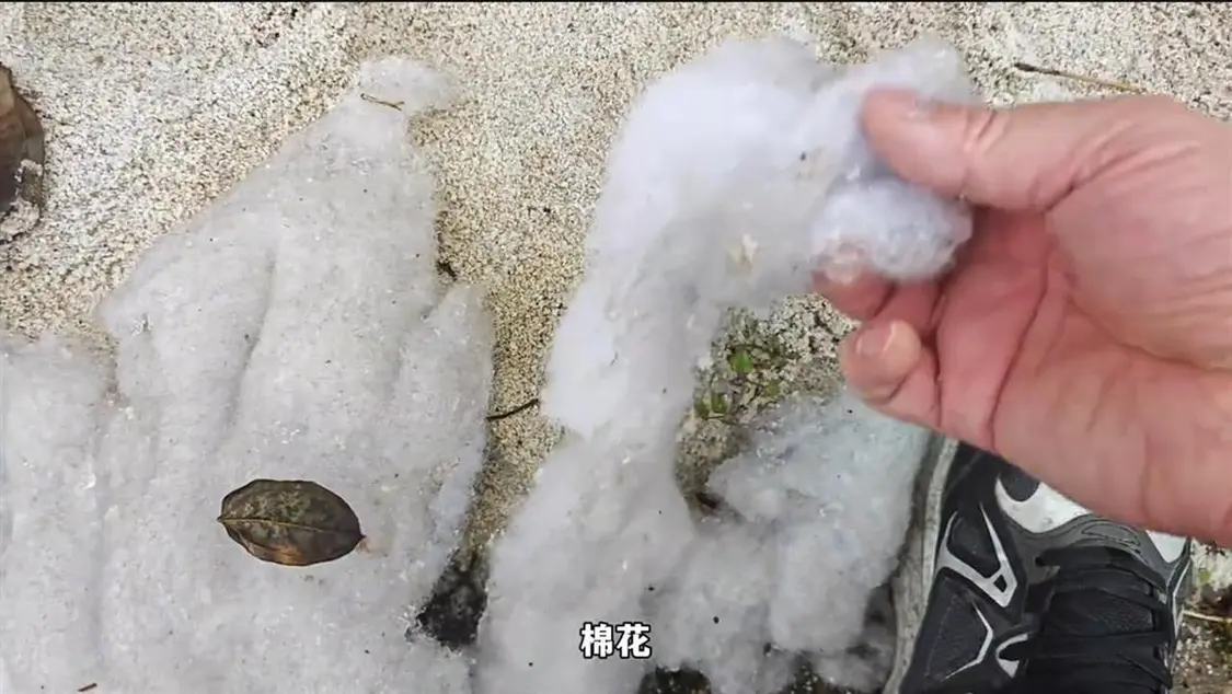 网友发布的视频显示,在一处园区内,地面、屋顶以及树木上都有“雪花”,走近后才发现实际上是白棉花。对此,拍摄者在视频中感叹:“他们居然管这个叫雪。”