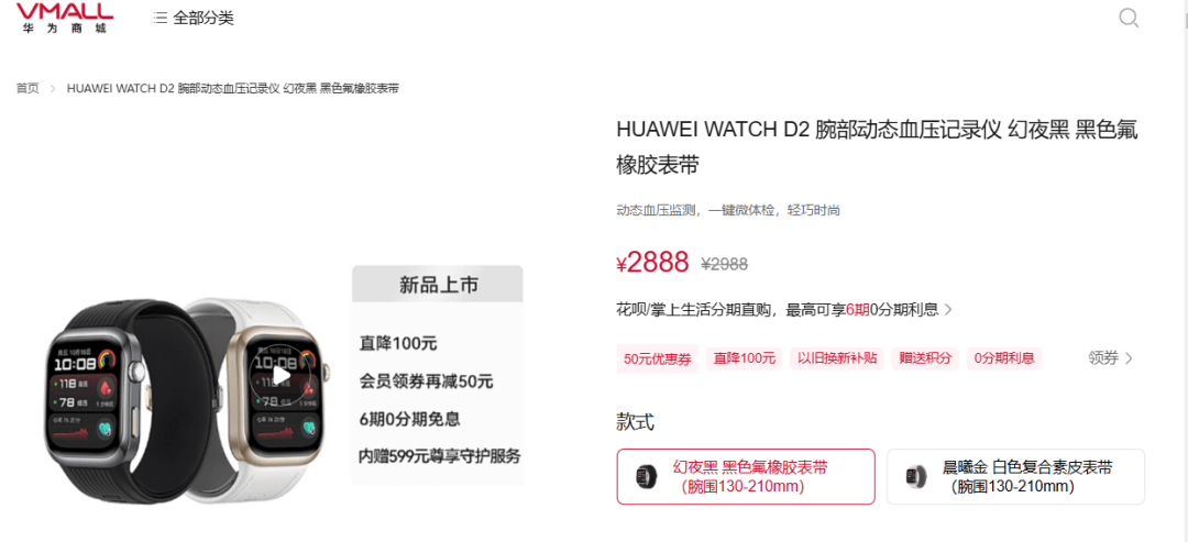 公开资料显示,华为WATCH D2于2024年11月26日正式发布,定价为2988元,主打的功能为测量、记录使用者的血压,余承东曾发微博称该产品通过了多个国家的医疗器械认证。