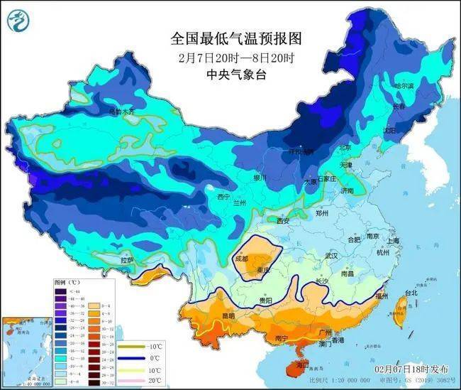 受强冷空气影响,预计,2月7日20时至8日20时,西南地区东南部、江汉、江淮西部、江南、华南北部和中东部以及内蒙古东北部、黑龙江西部和北部、西藏东北部、青海南部、川西高原北部等地降温6~8℃,其中,浙江中东部、广东北部等地的部分地区降温可达10℃以上。8日早晨,最低温度0℃线将南压至贵州南部至江南南部一带。