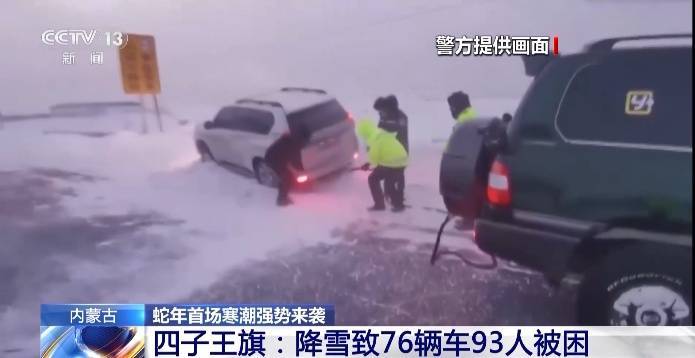 2月6日,内蒙古乌兰察布市四子王旗出现大面积降雪,局地气温下降10摄氏度以上。受降雪影响,76辆车93人被困国省干线,当地公安交警部门迅速赶往现场展开救援。