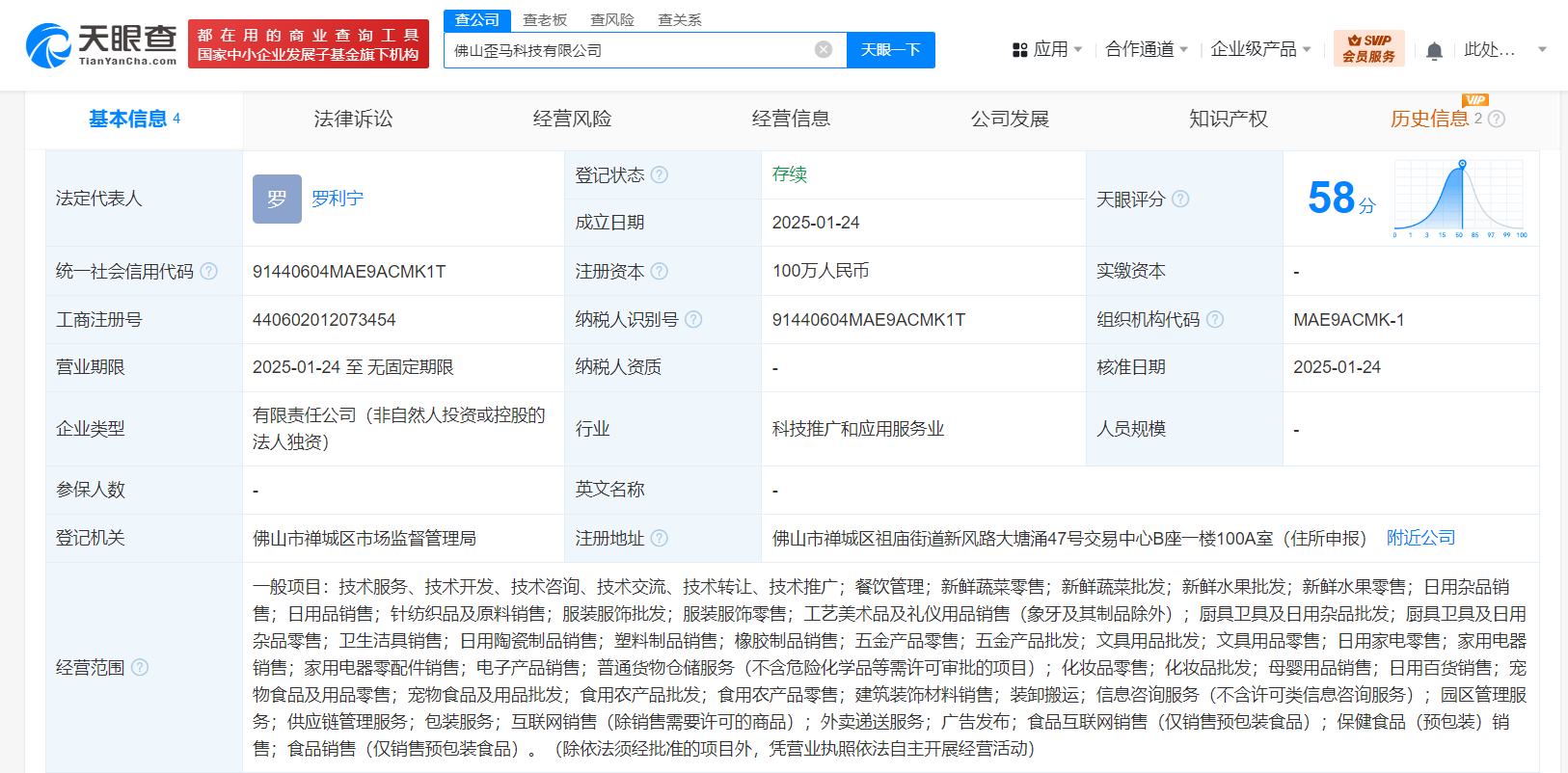 天眼查App显示,近日,佛山歪马科技有限公司成立,法定代表人为罗利宁,注册资本100万人民币,经营范围含日用品销售、五金产品零售、宠物食品及用品零售、互联网销售、外卖递送服务、食品互联网销售、保健食品销售等。股权全景穿透图显示,该公司由贵州歪马科技有限公司全资持股,后者为美团香港有限公司全资子公司。