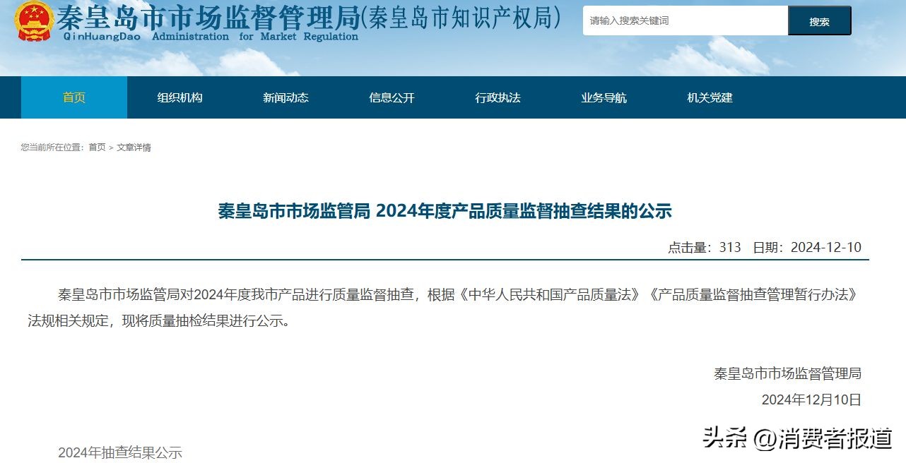 2月4日,《消费者报道》记者再次登陆秦皇岛市场监督管理局官网,未能再搜索到该公示,但通过搜索引擎搜索还能找到该抽查结果。
