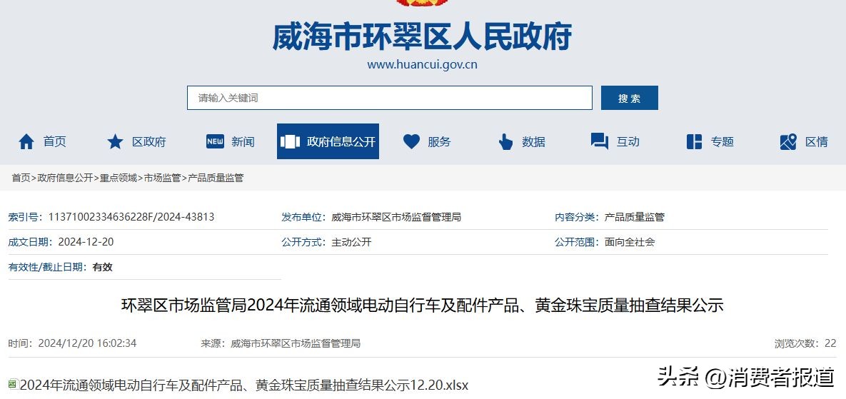 2024年12月,威海市环翠区市场监督管理局发布2024年流通领域电动自行车及配件产品、黄金珠宝质量抽查结果公示,“老凤祥”“DR”上榜不合格名单。