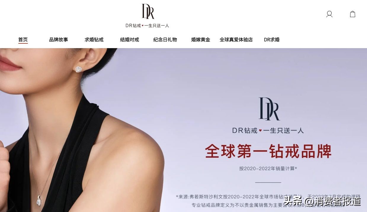 至于“DR”,其广告语让人印象深刻,宣称“一生只送一人”“男士一生仅能定制一枚”“全球第一钻戒品牌”。