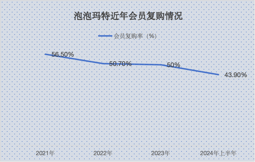 这组数据也意味着,近些年里虽然泡泡玛特的会员贡献率一直保持在高水平,但会员复购率在下滑,消费者正在降低购买频率。