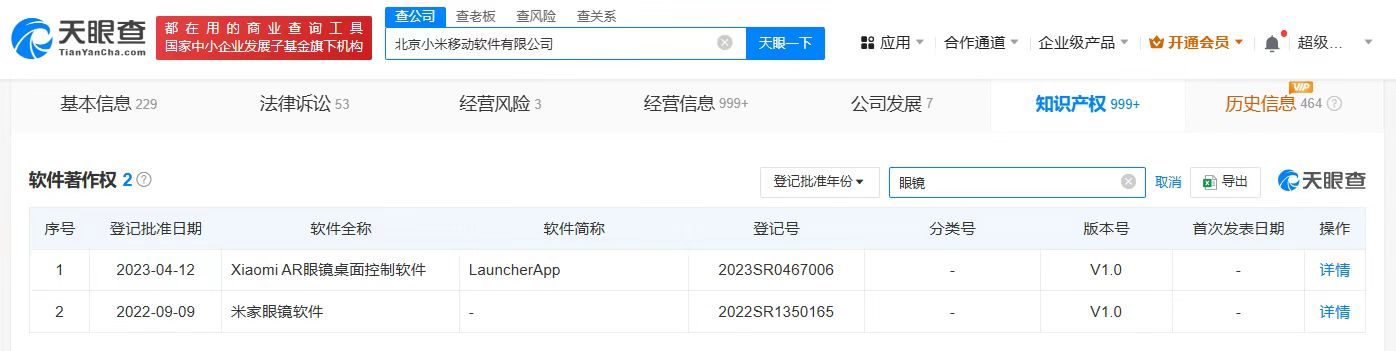 天眼查App显示,小米通讯技术有限公司成立于2010年8月,法定代表人为屈恒,董事长为雷军,注册资本3.2亿美元,由Xiaomi H.K. Limited全资持股。值得注意的是,其全资子公司北京小米移动软件有限公司已获批登记“Xiaomi AR眼镜桌面控制软件”“米家眼镜软件”著作权。此外,该公司还申请了上百项眼镜相关专利,大多数专利申请已获授权,包括“无线传输电路及AR眼镜”“一种无线充电组件、VR眼镜和包装盒”“AR眼镜主体”“AR眼镜交互显示方法、装置、设备及存储介质”等。