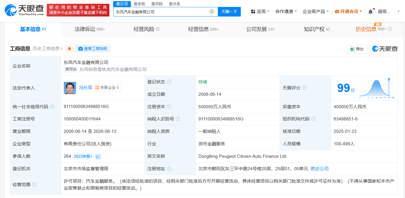 天眼查App显示,近日,东风汽车金融有限公司发生工商变更,注册资本由40亿人民币增至50亿人民币。