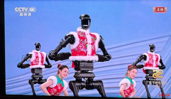 据悉,这并不是宇树机器人第一次登上春晚舞台。2021年牛年春晚,机器牛“犇犇”就和大明星们一起跳过舞,靠可爱的外形和灵活的动作圈粉无数。四年后,宇树H1再次登上春晚,带来了更酷炫的科技感。