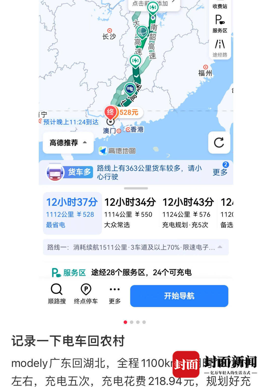 “1100公里充电五次花费218元,规划好充电全程无压力。”赶在春节前出发的小方早早回到了湖北老家,他也晒出了自己的出行账单。