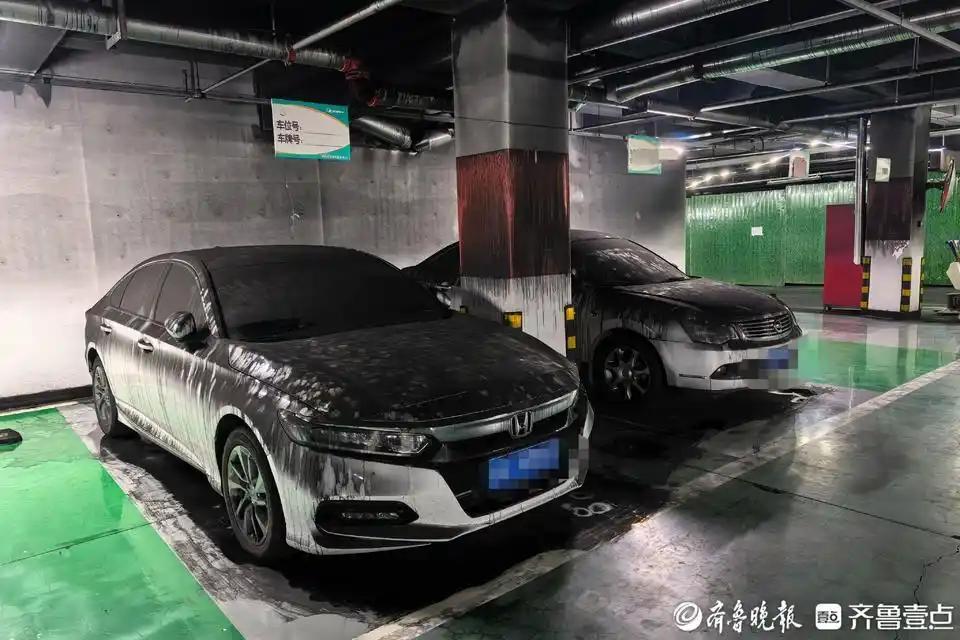 1月8日上午,在事发一天后,记者来到涉事小区探访。起火点位于车库的地下二层,可以看到,车库已恢复照明,车库地面、墙壁和顶部的各种管道被熏黑,车库里仍有不少车辆未开走,车身被熏得黑乎乎的。数十名保洁人员正在清理地面,地下车库出入口处设置了冲洗点,为业主清洗被熏黑的车辆。