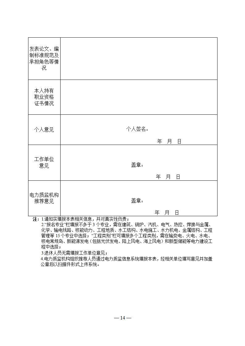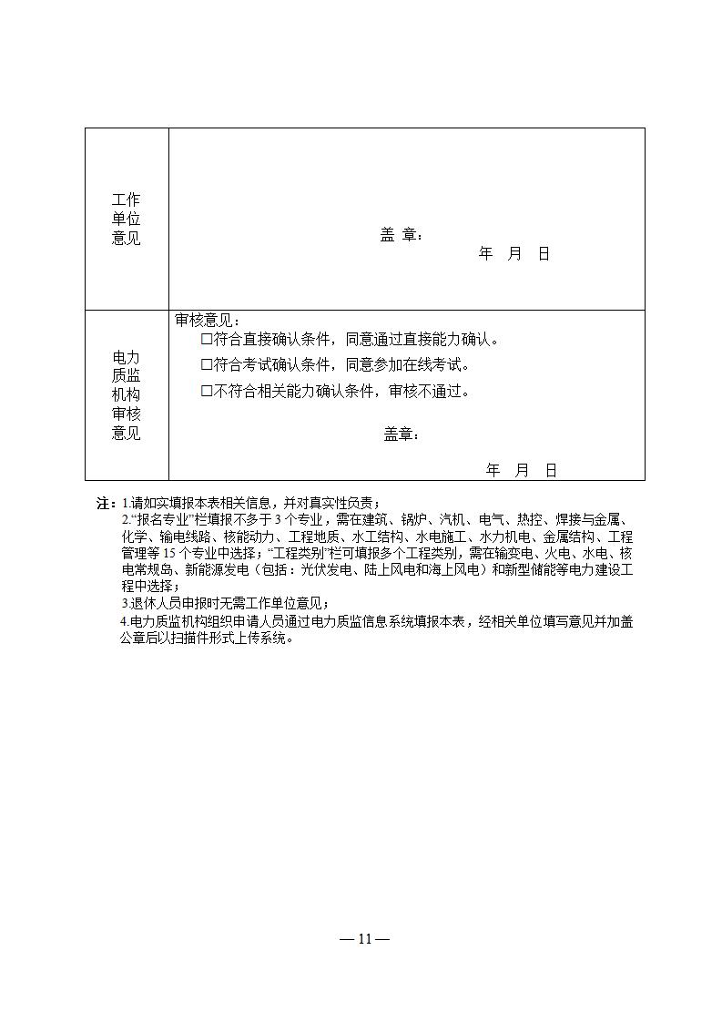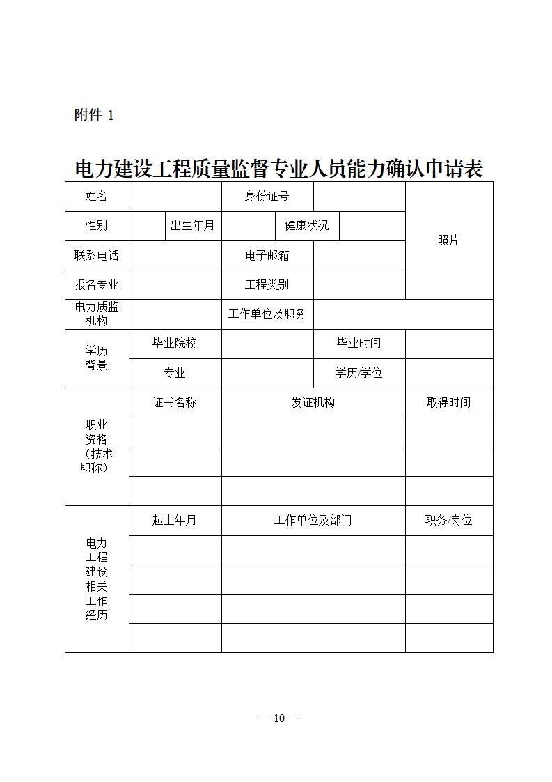 附件:1.电力建设工程质量监督专业人员能力确认申请表