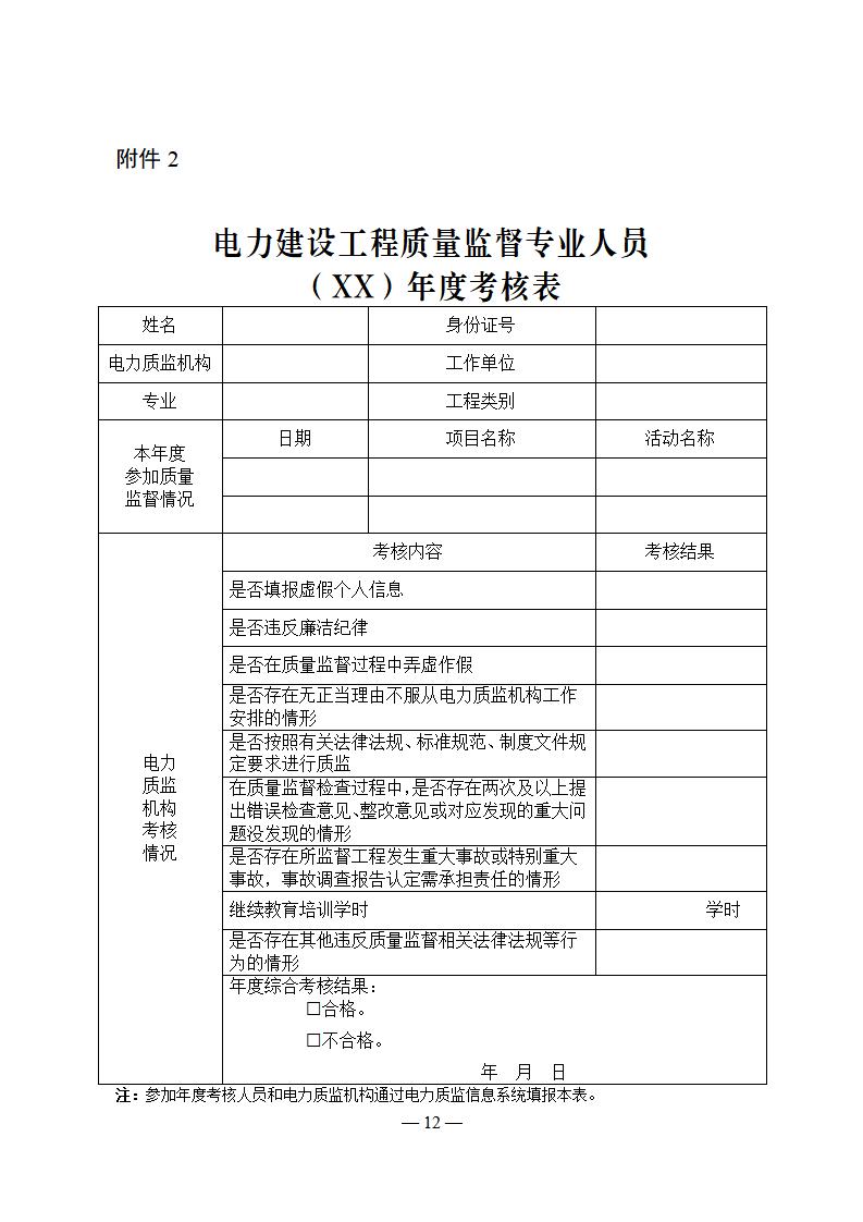 2.电力建设工程质量监督专业人员(XX)年度考核表