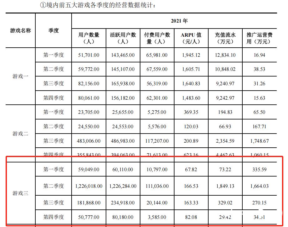2021年,该游戏的付费用户人数由最高峰的第二季度11万跌至第四季度的3585人。