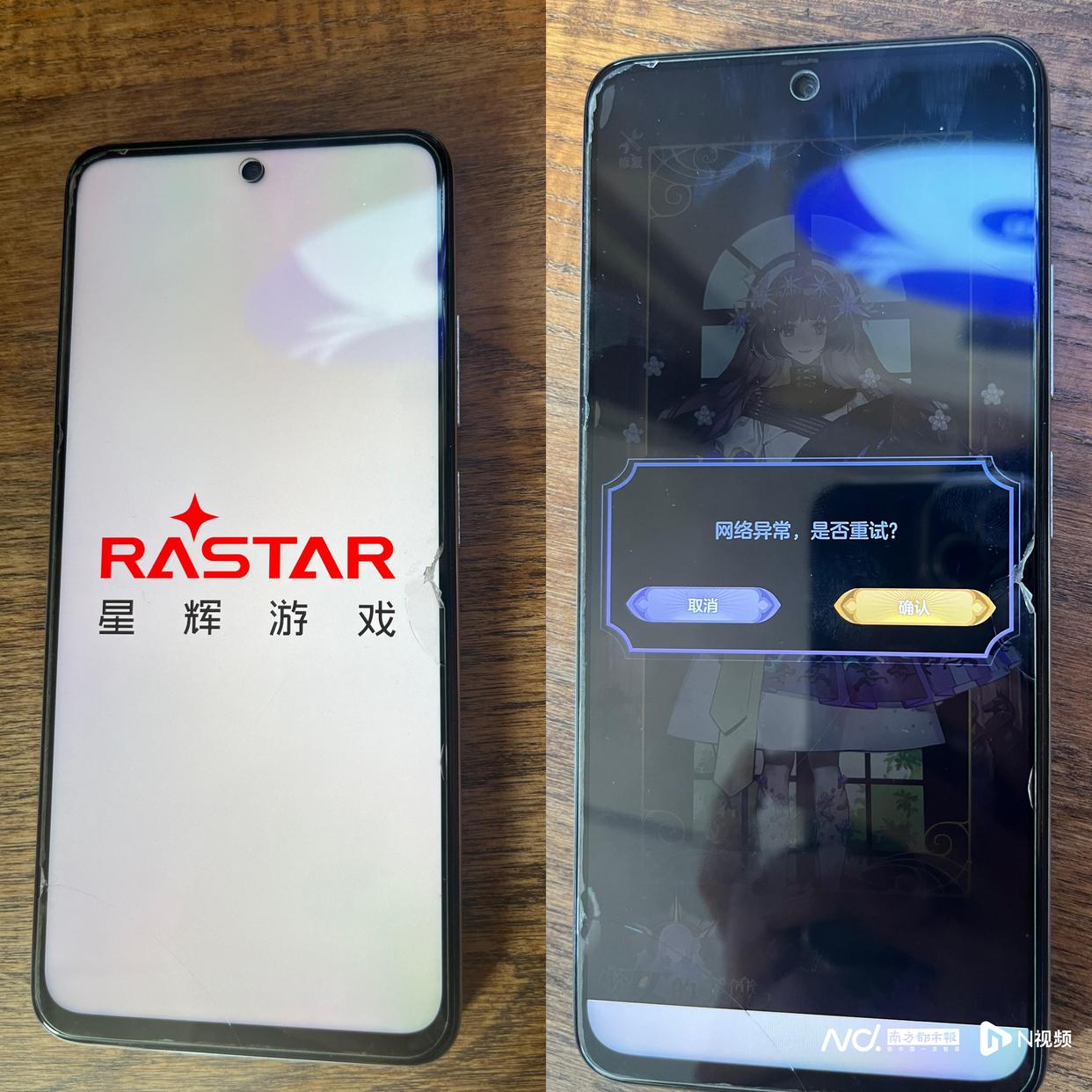 打开游戏APP,会弹出“星辉游戏”四个字,随后游戏页面显示“网络异常,是否重试”