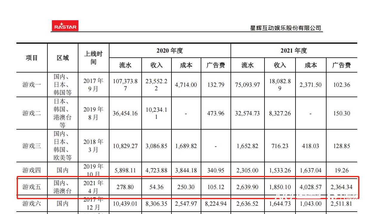 根据公告,《少女的王座》2020年流水278.8万元,收入54.36万元,成本250.30万元,广告费105.12万元,2021年上线以来,其流水2639.90万元,收入为1850.10万元,但成本为4028.57万元,广告费为2364.34万元。