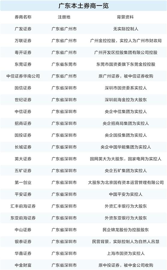 据证券时报记者统计,目前注册地在广东省广州市、深圳市和东莞市的券商至少有21家,不过广东国资企业和地市控股的券商整体规模较小,尚不如上海、江苏等地国资控股的券商实力雄厚,存在较大的并购整合空间。