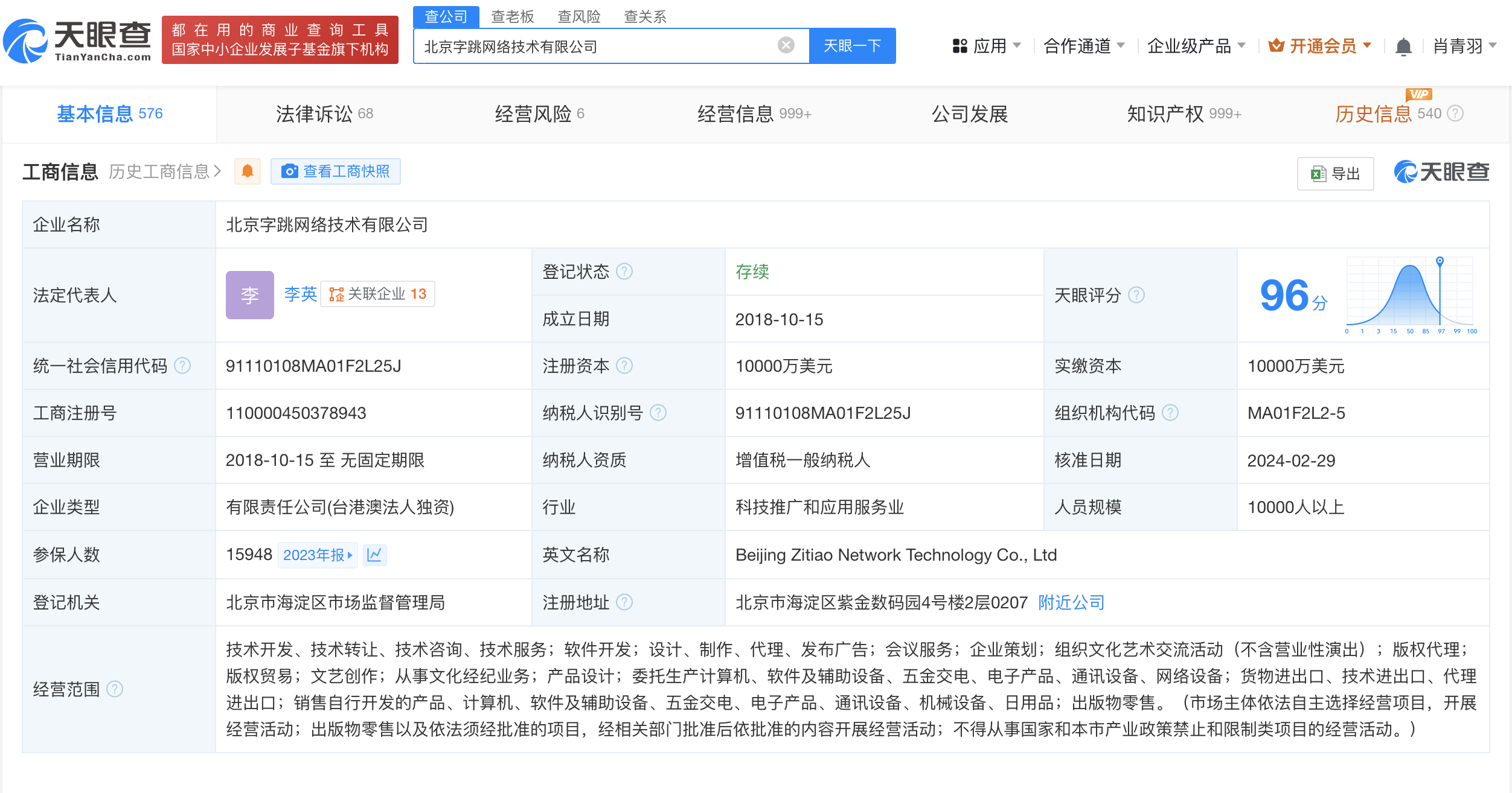 该公司成立于2018年10月,法定代表人为李英,注册资本1亿美元,由抖音集团(香港)有限公司全资持股。据悉,飞书智能伙伴创建平台Aily是一款全新的企业级智能应用开发平台,围绕着大语言模型(LLM)提供AI技能编排、知识数据处理、效果调优和持续运营能力。