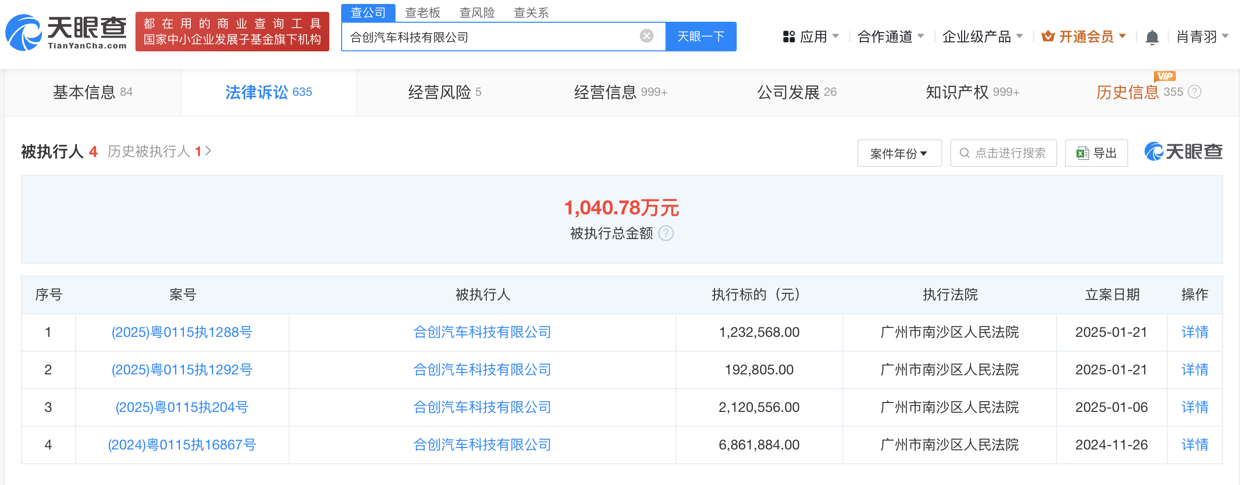 天眼查法律诉讼信息显示,1月21日,合创汽车科技有限公司新增2条被执行人信息,执行标的合计142.5万余元,涉及广告合同纠纷等案件,执行法院均为广州市南沙区人民法院。