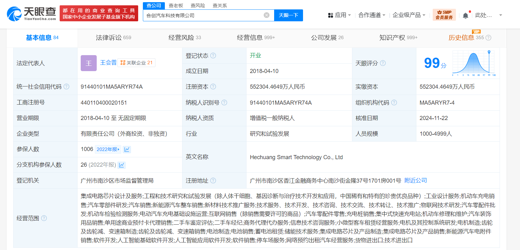 合创汽车科技有限公司成立于2018年4月,法定代表人为王会普,注册资本约55.23亿人民币,经营范围含集成电路芯片设计及服务、工程和技术研究和试验发展、工业设计服务、机动车充电销售、汽车零部件研发、汽车销售、新能源汽车整车销售、新材料技术推广服务等,由广东珠投智能科技投资有限公司、广汽埃安新能源汽车股份有限公司、广汽集团(601238)等共同持股。