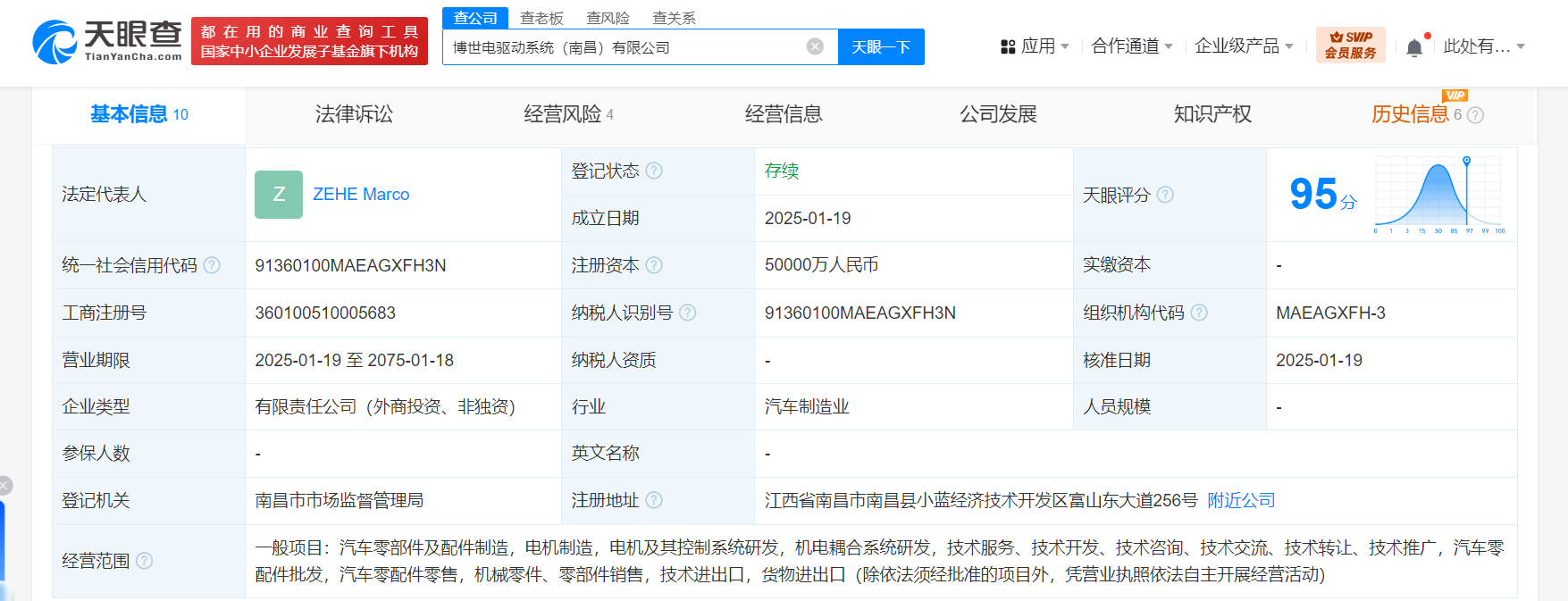 天眼查App显示,近日,博世电驱动系统(南昌)有限公司成立,法定代表人为ZEHE Marco,注册资本5亿人民币,经营范围含汽车零部件及配件制造、电机制造、电机及其控制系统研发、机电耦合系统研发、汽车零配件批发、汽车零配件零售等。股东信息显示,该公司由ROBERT BOSCH INTERNATIONALE BETEILIGUNGEN AG、江铃汽车集团有限公司、博世(中国)投资有限公司共同持股。