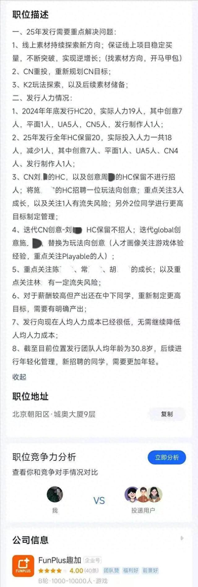 近日,游戏公司趣加(FunPlus)的一份文件引发了网友们的热议,其中提及,“发行团队人均年龄30.8岁,后续紧跟年轻化管理,需要更加年轻”。
