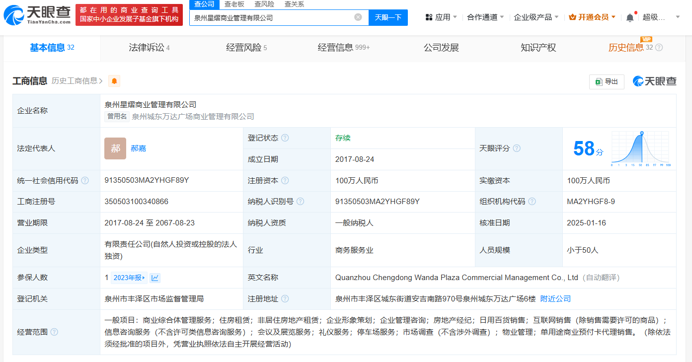 泉州星熠商业管理有限公司成立于2017年8月,注册资本100万人民币,经营范围包括商业综合体管理服务、住房租赁、非居住房地产租赁等。值得注意的是,不久前,烟台星颐瑞迎商业管理有限公司刚接盘泉州星耀商业管理有限公司。