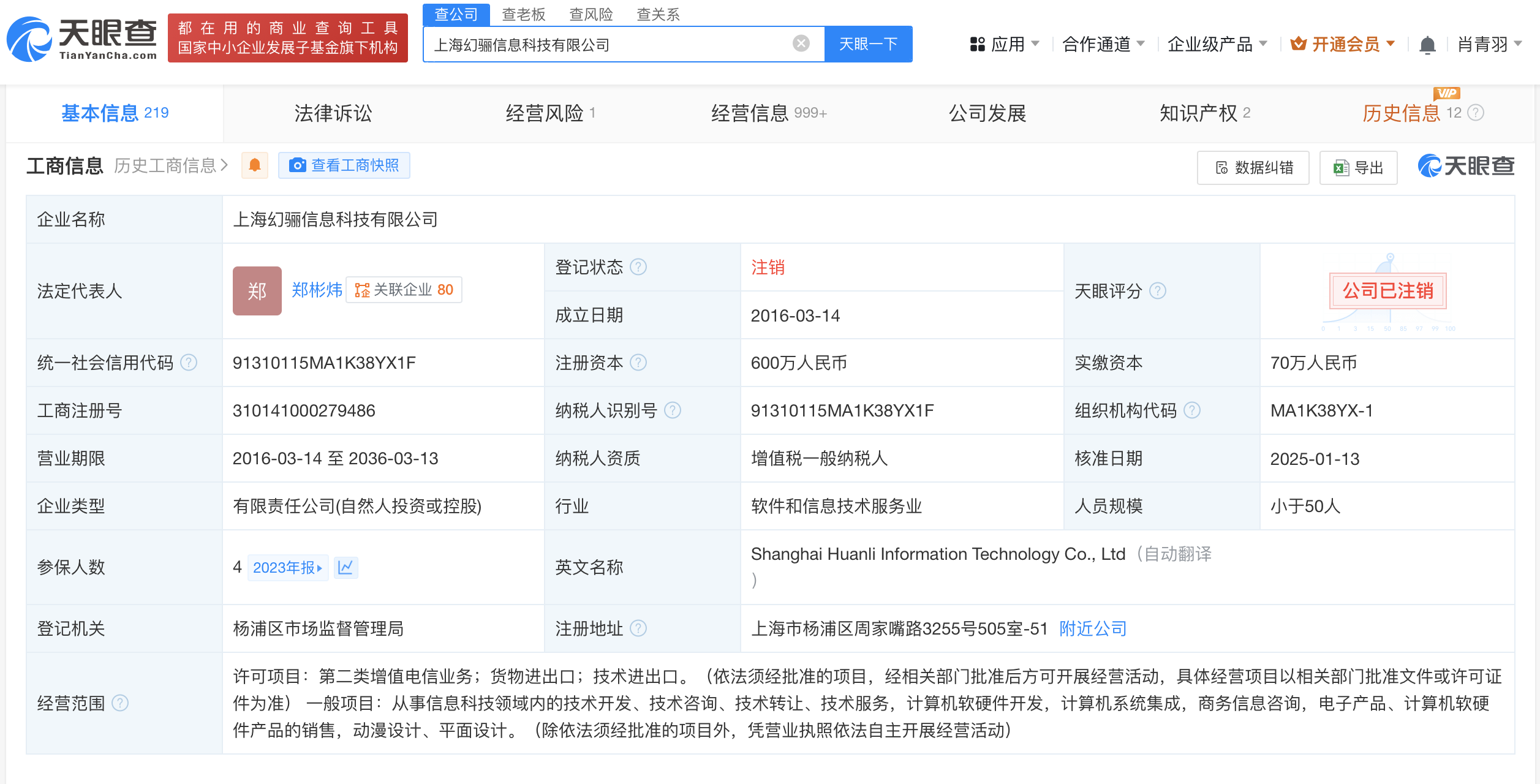 天眼查App显示,近日,上海幻骊信息科技有限公司登记状态由存续变更为注销。去年7月,该公司已发布注销备案公告,注销原因为决议解散。