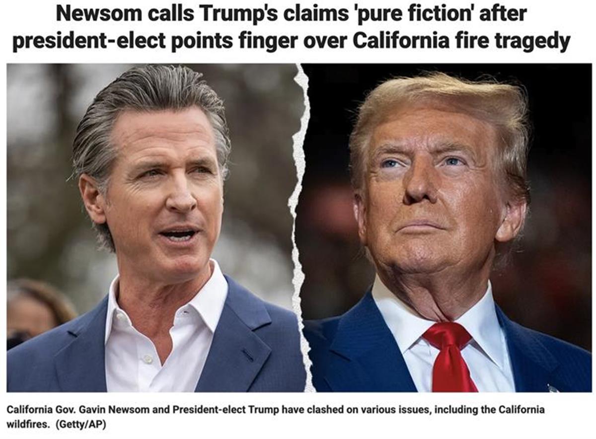 山火肆虐造成严重损失令当地居民愤怒。对此,加州州长纽森则将责任归咎于当地政府。而美国候任总统特朗普则指出,民主党籍加州州长纽森以及现任总统拜登应为这场火灾负责。特朗普还进一步抨击称,纽森管理不善加剧了灾情。特朗普的言论再次引发两党之间的激烈争论。