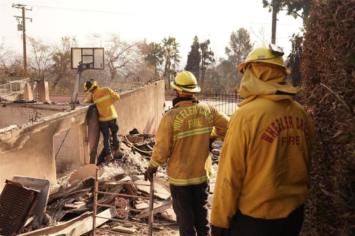 1月9日,消防员在美国加利福尼亚州洛杉矶县东部的阿尔塔迪纳地区工作(图源:新华社)