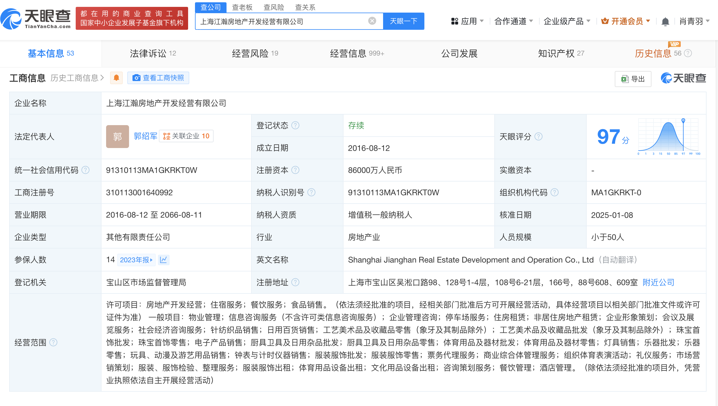 上海江瀚房地产开发经营有限公司成立于2016年8月,法定代表人为郭绍军,经营范围包括房地产开发经营、住宿服务、餐饮服务、食品销售等,现由招商蛇口旗下上海招商置业有限公司、上海招广置业有限公司及上海吴淞口国际邮轮港发展有限公司共同持股。