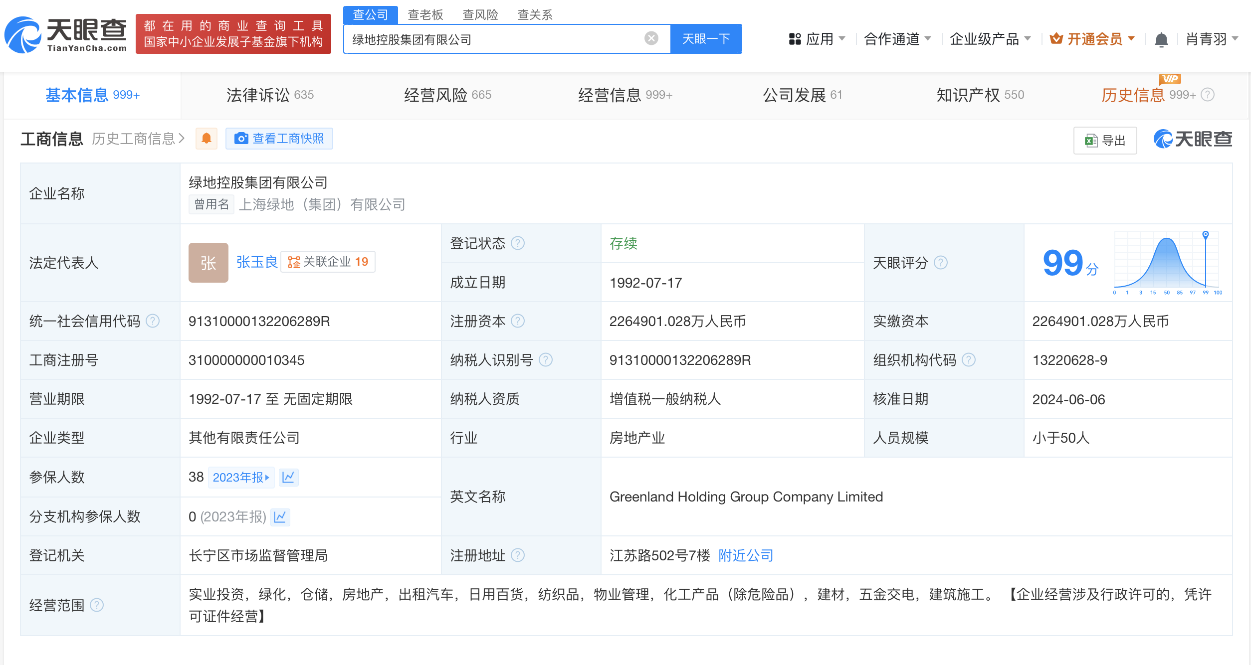 绿地控股集团有限公司成立于1992年7月,法定代表人为张玉良,注册资本约226.5亿人民币,由绿地控股(600606)、绿地金创科技集团有限公司共同持股。风险信息显示,该公司现存12条被执行人信息,被执行总金额超26亿元,此外还存在多条股权冻结信息。