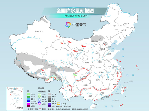 明天,西藏西南部、新疆北疆北部、内蒙古中部、山西中北部等地部分地区有小雪,其中,西藏西南部局地有中到大雪。四川盆地南部、云南东北部、台湾岛东部等地部分地区有小雨。