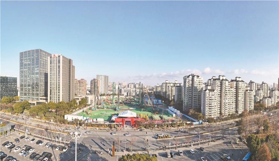 1月9日,空中俯瞰中建二局华东公司承建的灵石社区(自仪厂地块)项目建设工地。
