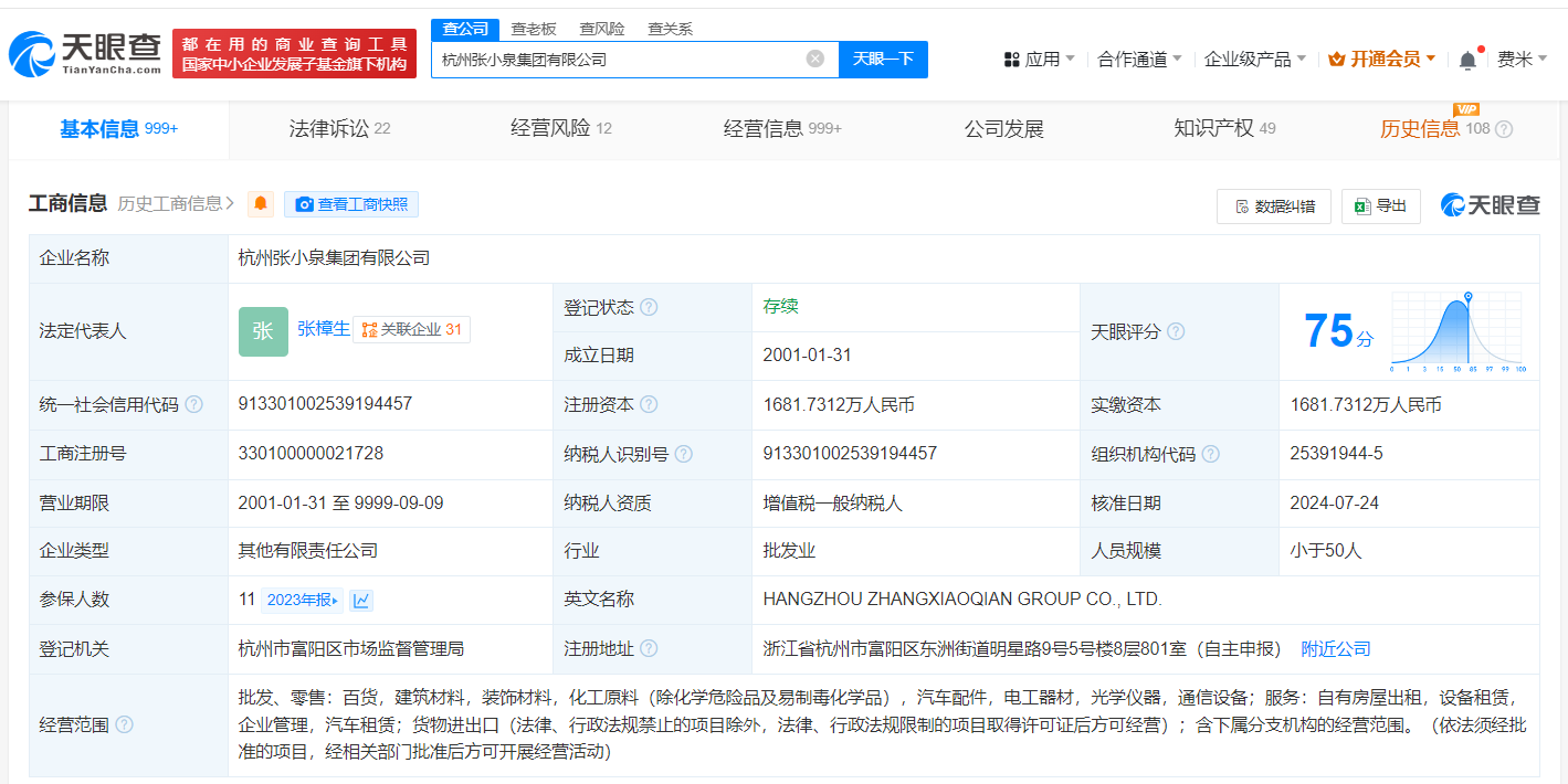 天眼查深度风险信息显示,1月8日,杭州张小泉集团有限公司、张国标、张樟生新增2则被执行人信息,执行标的合计6.1亿余元,2起案件被执行人还包括富春控股集团有限公司等,执行法院均为陕西省西安市中级人民法院。